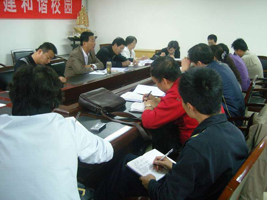 丁养斌副书记做了最后总结。他首先对甲型H1N1流感防治工作做了要求,指出:预防甲型HINI流感是一件重大的事情,各部门和院系一定要高度重视,尤其是要做好防治和隔离工作,加强对学生的心理辅导。近期不要组织大的密集型活动,对举办的每一次学生活动都要提前做好预警,防患于未然,同时要求大家做好国庆中秋长假的值班和学生的请销假、去向登记。随后他强调,一定要将以院系为试点进行大学生非专业素质培养的工作落到实处,将工作做细、做精,在实际工作中要积极思考,大胆探索,深入推进目标教育。