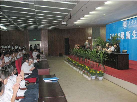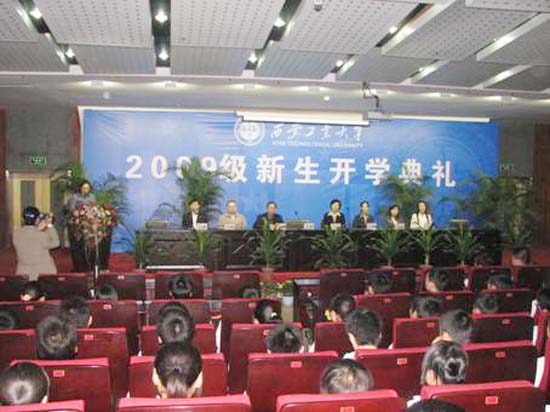 在典礼上,首先播放了校党委书记赛云秀和校长刘江南的视频讲话,随后学院党总支书记张忠教授介绍了学院历史概况、发展及办学理念,她衷心祝福新生们在西工校园度过自己人生中最精彩、最愉快、最幸福的生活。副院长郝东锋教授向同学们做了专业介绍,他希望同学们高素质全面发展,基础要厚,口径要宽,思想道德要好。随后张长峰老师代表教师发言,鼓励新生抓住机遇,努力奋斗,并对09级新生提出了要求和殷切的希望。温瑶同学作为学生代表发言,以亲身实践告诉新生们读大学究竟读什么,希望他们在大学生活中珍惜时间,勤奋学习,树立更高的人生目标,有一个好的规划,为自己的人生抒写绚丽的色彩。(文/图:姚敏茹、薛鹏)