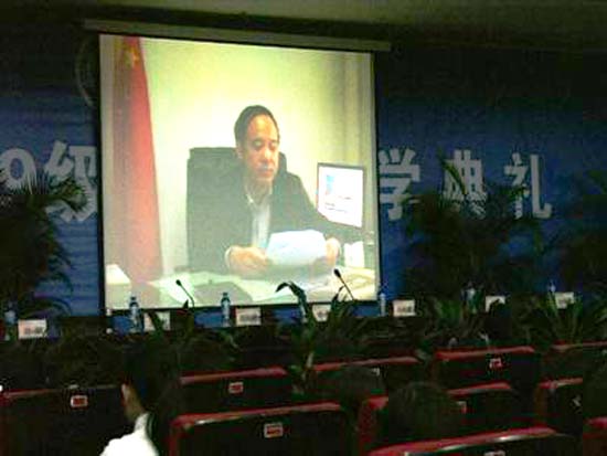 典礼伊始,播放了校党委书记赛云秀和校长刘江南讲话的短片,随后,学生代表、教师代表分别发言,表示要在今后的学习工作中将积极进取,努力奋斗,争取为学院各项事业的蓬勃发展贡献力量。院长雷志勇向同学们简要介绍了学院发展情况。副院长高松、党总支书记王辉强分别向新生致以良好的祝愿。(图/文:刘鑫)
