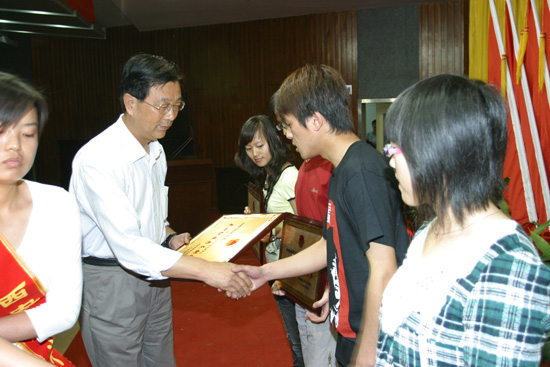 电信学院优秀学生团干张明宇同学代表获奖个人发言。五四红旗团支部标兵070503团支部代表获奖集体展示了他们团支部的风采。之后,校党委副书记丁养斌结合目标教育对获奖学生和集体提出了几点希望,并祝全校广大团员青年学生节日快乐。