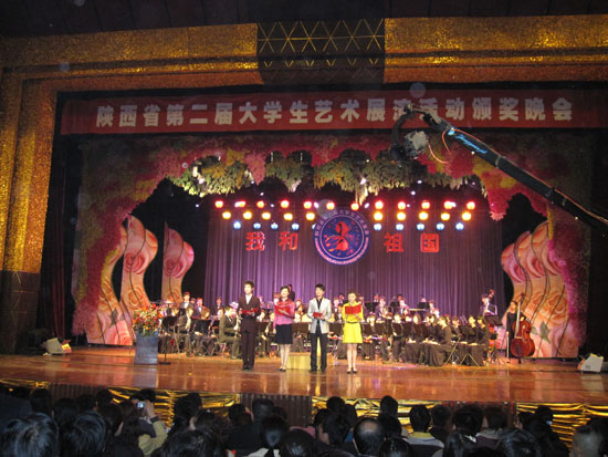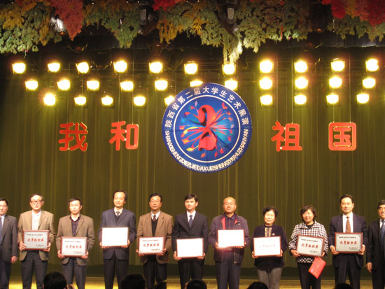 (本网讯)陕西省第二届大学生艺术展演活动闭幕式于3月26日晚在古都新世纪大酒店隆重举行。米兰网页版党委副书记丁养斌、西安工大艺术与传媒学院院长于唯德、党总支书记曹玉玲和部分获奖学生代表应邀参加了闭幕式。