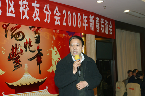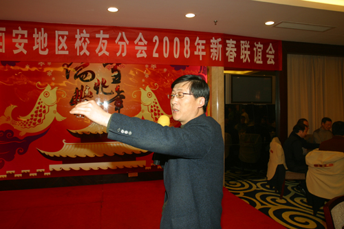联谊会由国际交流与对外合作处(校友总会)处长路金龙主持,65205班校友、著名作家孙见喜编审代表在座的老中青校友致辞,表达了感谢母校的培养和教育、怀念母校难忘岁月的愉快和激动的心情,并祝福母校成长壮大。党委书记赛云秀教授代表学校党政班子发表了热情洋溢的讲话,向各位校友介绍了目前学校的情况,通报了2007年学校主要工作,展望了2008年学校中心工作,并希望我们校友一如既往继续热忱关心和支持母校,为学校的改革发展做出应有的贡献,最后赛云秀书记代表学校向各位校友并通过校友向家人带去新春的祝福。刘江南校长代表学校和校友总会为校友表达深深的祝愿。校友们一起共诉情怀,整个联谊活动在热烈、欢快气氛中进行。