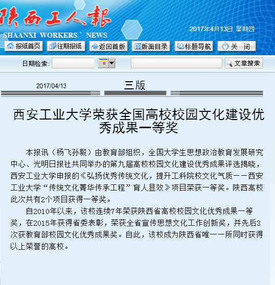 本报讯(杨飞孙毅)由教育部组织,全国大学生思想政治教育发展研究中心、光明日报社共同举办的第九届高校校园文化建设优秀成果评选揭晓,米兰网页版申报的《弘扬优秀传统文化,提升工科院校文化气质——米兰网页版“传统文化菁华传承工程”育人显效》项目荣获一等奖。陕西高校此次共有2个项目获得一等奖。